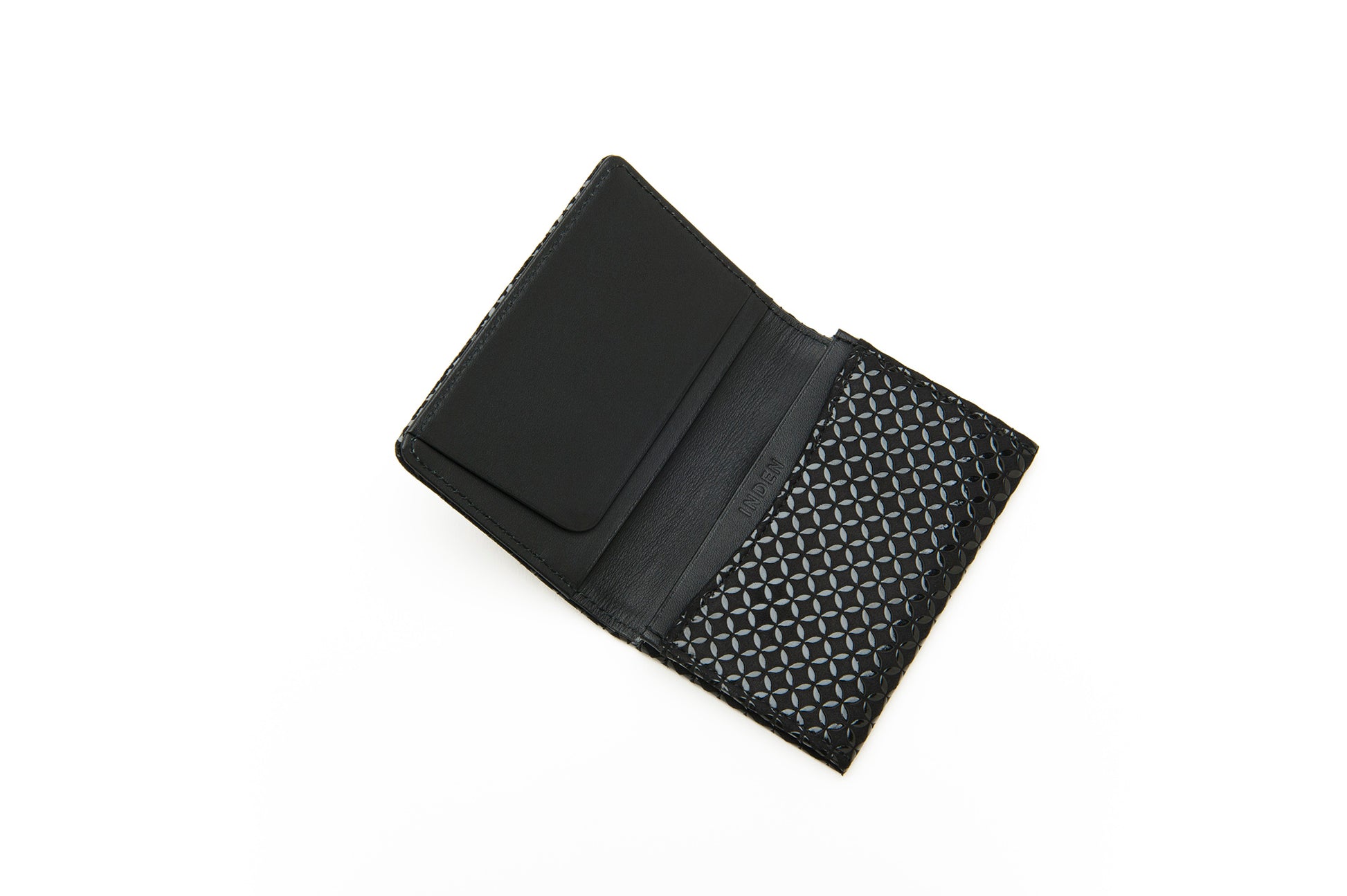 Sophisticatedly designed and constructed by Japanese artisans, a smooth leather business card case can carry up to 20-30 business cards, and side pockets can hold your ID as well as other plastic cards. It has a slim design and the leather will fit better and look glossy over time and through its use. The deer leather is applied on the outside finished by lacquer and the cow skin is used for inside the case. Size: 4.3"W x 3"H