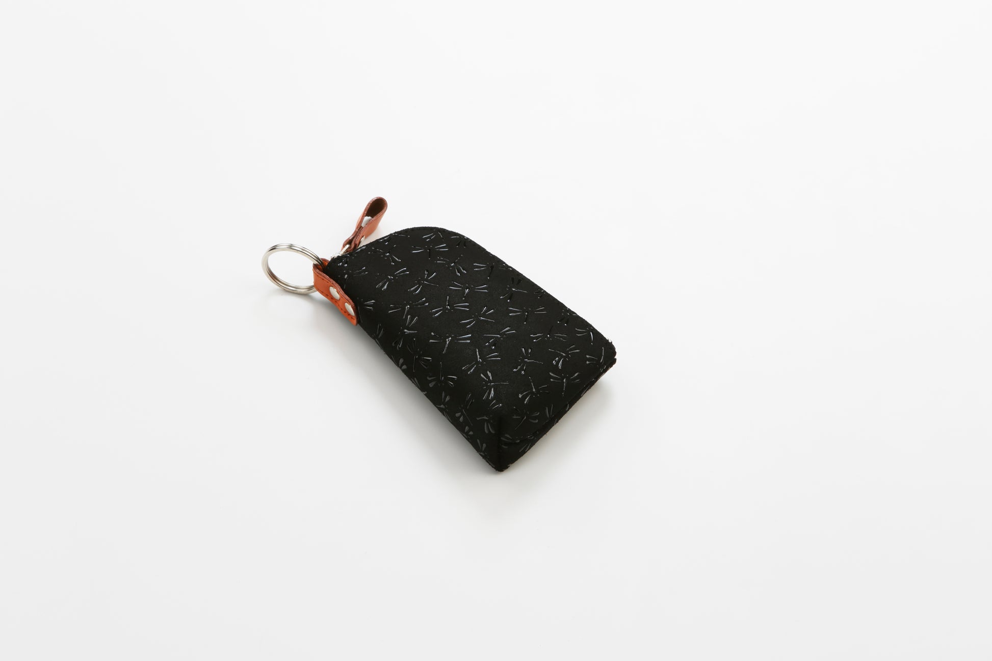 A zipped key case equipped with three key rings, two inside and one outside. Perfectly sized to fit in the palm of your hand, this key case is designed to also accommodate electronic car keys.